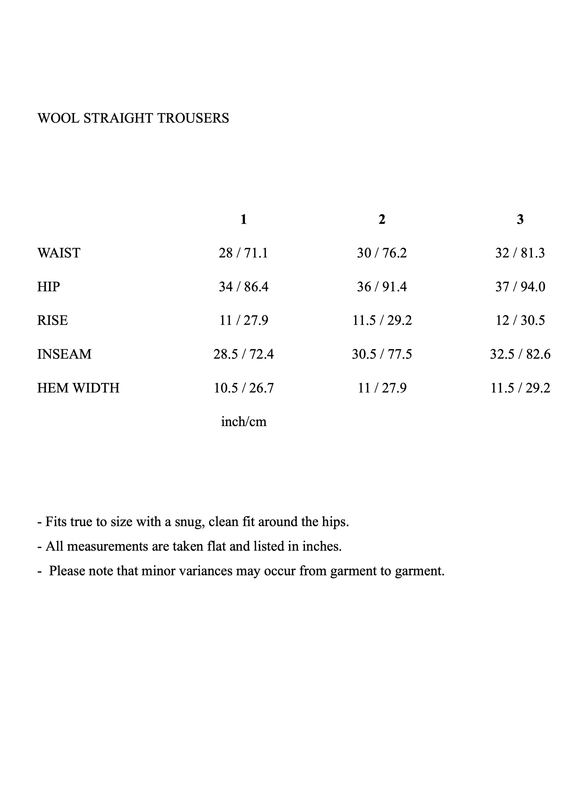 The Straight Trouser features a wide, relaxed straight fit with a single pleat that opens along the side seam, starting above the knee. Detailed with side pockets, rear welt pockets, a front snap fastening, and a YKK zip fly. The side pockets feature two rivets on each end for added reinforcement. The trouser also includes a snap to open the pleat at the bottom. Cut from 100% wool suiting in dark black, this piece offers a structured yet soft drape.
